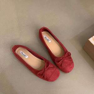 35-43 サイズの大きい女性の靴、優しい夕風のリボンフレンチシューズ、女性の春夏の新しい平底ビーニーシューズ