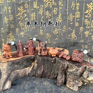 ナツメ材文昌塔、麒麟、関公、獅子、小福神、キツネなどのペンダント、キーペンダント、バッグペンダント