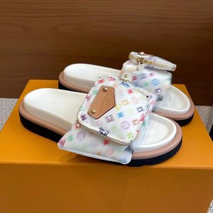 GAUAI~村上隆共同ブランド ホワイト 3色 レディース ベルクロ 厚底ビーチサンダル サマーバッグ 平底 カップルサンダル