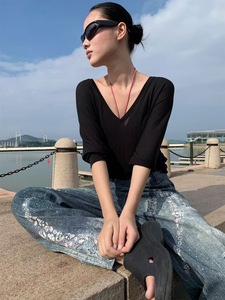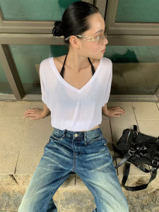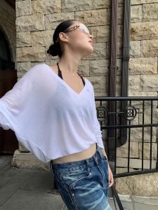[9hour] レイジースタイル リラックス 長袖 Tシャツ レディース 2025 夏 バットスリーブ Vネック 薄手 トップス m11354