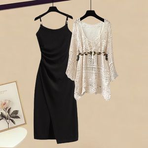 开春穿搭2025超火两件套春装套装波西米亚度假风镂空连衣裙套装女