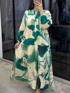 ヨーロッパとアメリカのクロスボーダー2025新しいプリントドレスルーズカジュアル外国貿易長袖ファッショナブルなVネックロングドレス