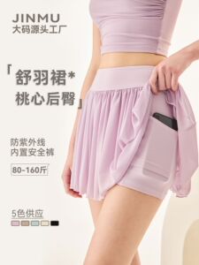 速乾性のファッショナブルなメッシュヨガショーツ、プリーツスカート、露出防止テニススカート、ポケット付きヒップリフティングスリーポイントスポーツパンツ
