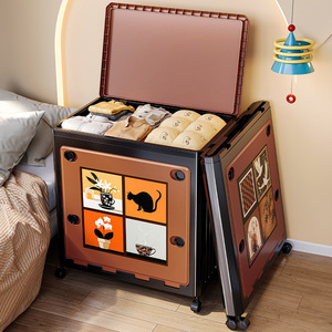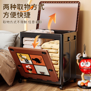 中世スタイルの衣類収納ボックス大容量家庭用フリップトップ収納ボックス寝室キルト折りたたみ式収納キャビネット車輪付き