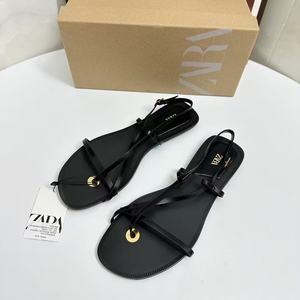 ZA 婦人靴 2025 新フレンチヒールクリップトゥボヘミアン薄型ストラップフラットローマサンダル女性の夏のファッション