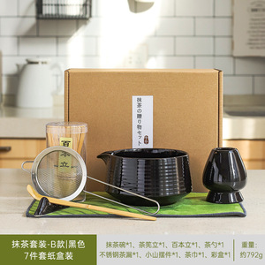抹茶セット|セクションB|光沢のある黒|カートン入り7点セット