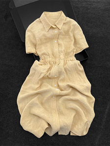 夏の純粋なリラックススタイルの小さな黄色のラミーリネンシャツドレス女性のための 2025 新しいスタイル