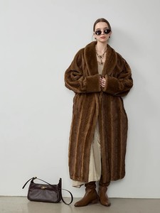 冬の新しいスリム中古女性グリーンフルーツカラーバットスリーブ環境に優しい毛皮ミンクコート模造ミンクファーコート