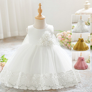 ヨーロッパとアメリカの新しい夏の子供ドレスプリンセスドレス鍛造布フラワーガールガールパーティードレスベビー1歳洗礼ドレス