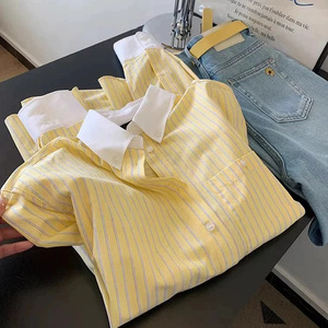 CHAOグレードおすすめ〜クリームイエローストライプ万能シャツレディース2025春韓国ニッチミルクふふトップス