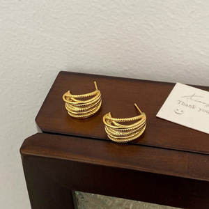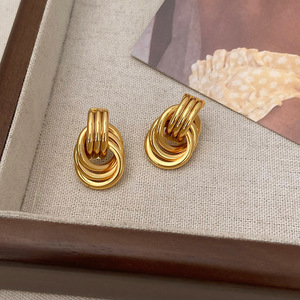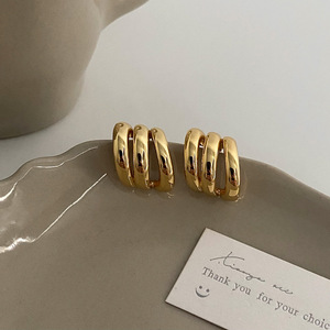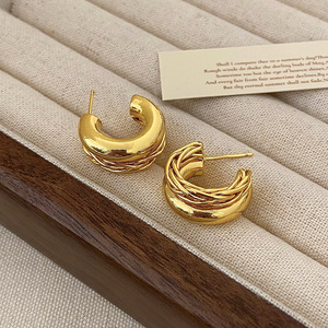 クロスボーダー Amazon 外国貿易幾何学的な重いゴールデンステートメントイヤリング銅メッキリアルゴールドハイエンドギフトイヤリング女性用