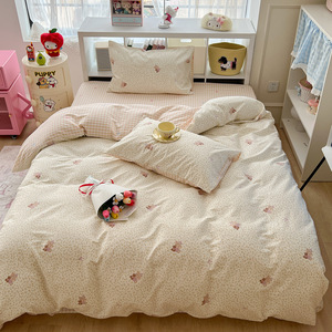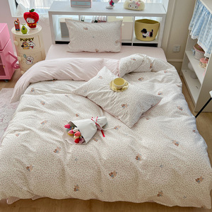 ins コットン 4 点セット オールシーズン 漫画 小さな新鮮な純綿キルトカバー 学生寮のベッドシーツ 3 点セット 4