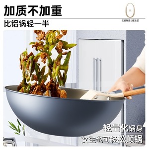 家用有钛炒锅无涂层不粘锅老式爆炒锅耐磨防滑炉灶通用少油烟煎锅