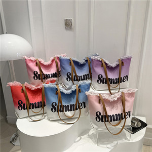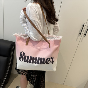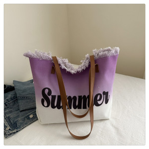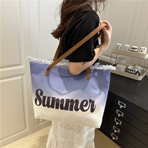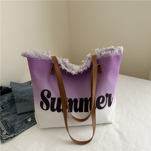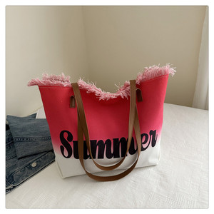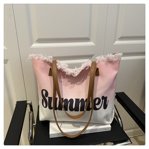 スミッジプリントレター2025夏新作パーソナライズされた大容量タッセルコントラストカラー外国風レディースショルダートートバッグ