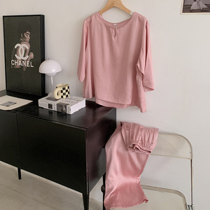 HOME PIQUE夏季凉凉套装 莱赛尔天丝A类圆领短袖长裤女士家居服