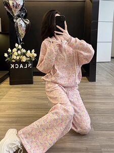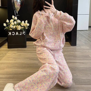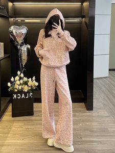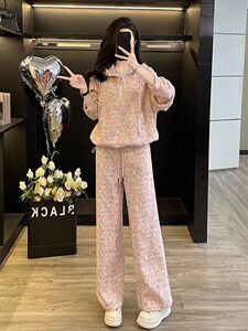 【60-70】欧货休闲运动新款设计感名媛显瘦连帽卫衣阔腿裤两件套