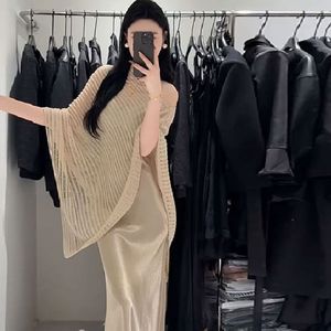 2025 夏のレイジースタイル中空日焼け止めショールマントと女性のための不規則な立体ニットセーターブラウス