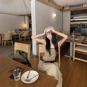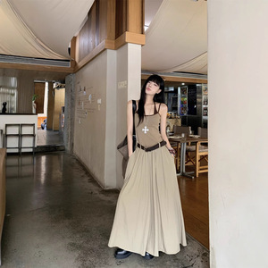 2025年夏のコントラストカラーデザインのリアルショット、ウエストを細くするホットガールの胸パッド付きフェイクツーピースサスペンダードレス