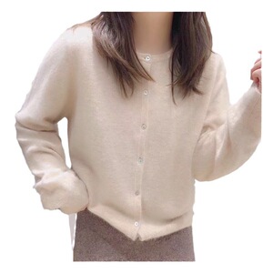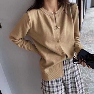 2025 春と秋の新ラウンドネックパープルショートニットカーディガンルーズアウターセータージャケット女性のための