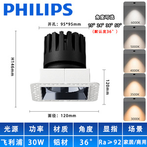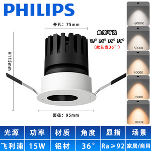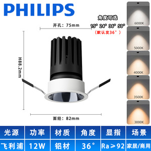 飞利浦高显色嵌入式cob洗墙灯 客厅家装三色变光无主灯小山丘射灯