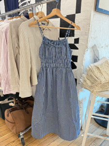 BM スタイルブルーチェック柄ウエスト痩身サスペンダードレス bm 女性ノースリーブスカートホリデースタイルレースアップロングスカート