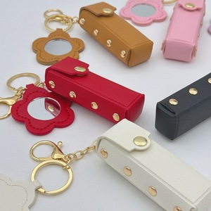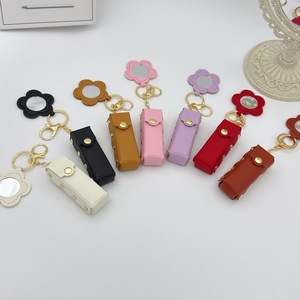 フラワーミラーキーホルダートランスレザーギフトペンダントジュエリークリエイティブミニ口紅収納キーチェーンペンダント