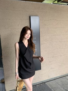 オールドマネースタイルレディース夏ハイエンドスイングカラーベストノースリーブトップシンプルショートスカートスカートスーツ2点セット