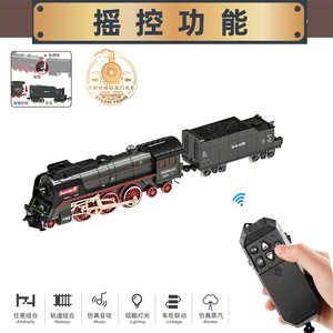 レトロ蒸気機関車トラックセットスプレー電気小型列車マッチング車両ヘッドアクセサリー男の子のおもちゃ