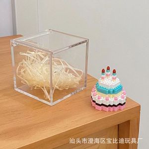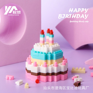 Xiaohongshu の同じ誕生日ケーキビルディングブロックパズル組み立てビルディングブロックピアノ装飾品男性と女性のカップルへのギフトとして
