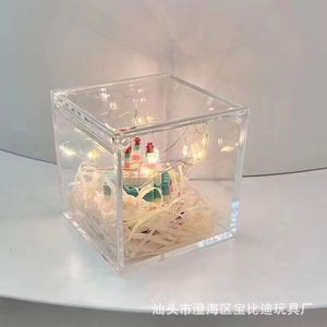 絶妙な小さな誕生日ケーキ + 透明ボックス + ラフィア + ライトストリング + サシェ + グリーティングカード