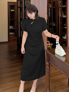 Eno プラスサイズの女性の新しい中国風の日常改良されたチャイナドレス 2025 夏の新しい気質ジャカードドレス 262605