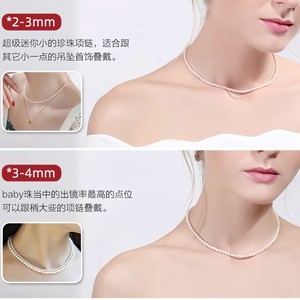 Zhuji 天然淡水真珠ネックレス 3-4 ミリメートル S925 シルバーラウンドミレットチェーンベビーチェーン半完成品 DIY