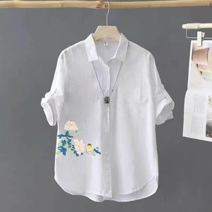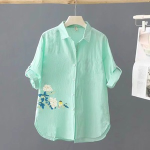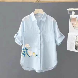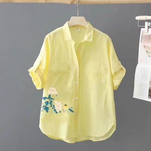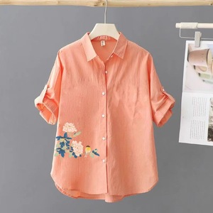 中年純綿半袖カジュアル無地シャツ 2025 夏の新作シャツデザインルーズトップ