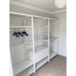 金属家具フレームオープンワードローブウォークインクローゼット棚スチールウッド構造アイアンハンガーラックフロアスタンド