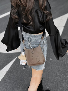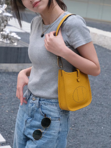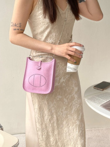 高級ワックス糸 TC 牛革バッグ クロスボディバッグ ミニ エブリン レディースバッグ ミニスモールバッグ ニッチライト 高級通勤バッグ