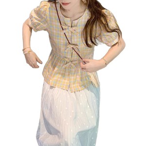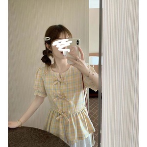2025 新しい夏のラウンドネックリボントップデザインニッチユニークでシックな女性のカジュアルシンプルな半袖