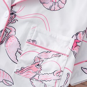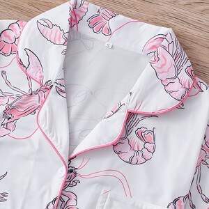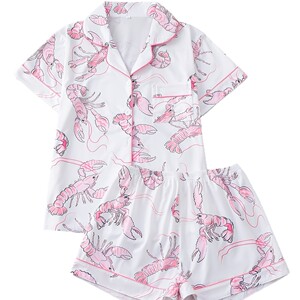 国境を越えた貿易ヨーロッパとアメリカの女性のパジャマセットエビプリント半袖ショーツホーム服ゆったりと快適なカーディガンラペル