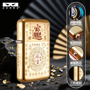 ZORRO 三世代ゾロ Z790-001 オリジナル銅吸金超薄型彫刻防風灯油ライターギフト