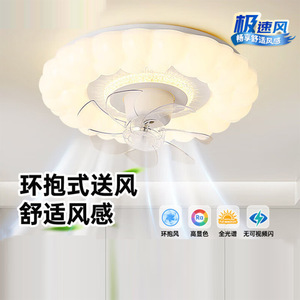 クリームスタイルファンライト寝室子供部屋マスターベッドルーム2025新しいサイレント360度首振りシーリングファンライト