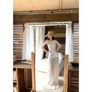 Xinda 海辺の休暇ロングスカート夏のハイエンドセレブフロアレングスメッシュスカートチューブトップスパンコールドレス女性用