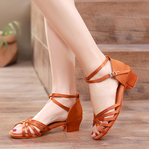 女の子用ラテンダンスシューズ、ソフトソール、大人用社交ダンス練習用ミッドヒールダンスシューズ、子供用プロ女子デニムダンスシューズ