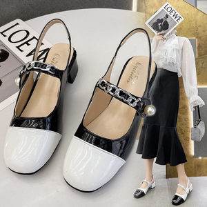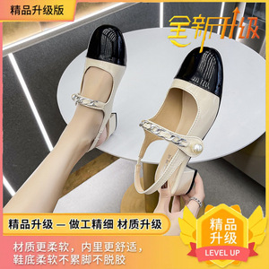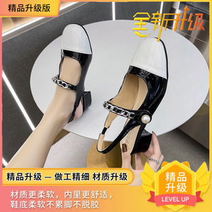 2025年新作ネットセレブシューズ、フレンチ太ヒール、夏用ソフトソールメリージェーン、大人の女性と若者向けのスリッポン