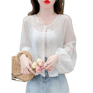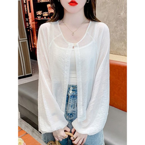 ソリッドカラーの薄いテンセル日焼け止めジャケット女性のための夏の 2025 新しいルーズスリムマイクロシースルーカーディガントップ