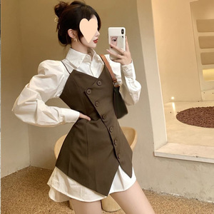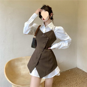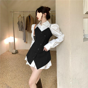 西装马甲女秋季收腰显瘦不规则马夹外套中长款设计感小众气质套装