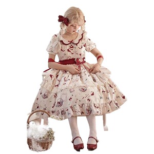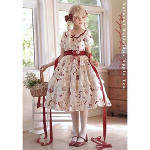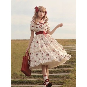 日本のかわいい女の子プリントロリータドールカラードレス女性の夏のソフトガール甘い牧歌的なスタイルのチュチュスカート