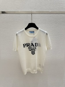 ニット半袖P Pujia Nanyouハイバージョン25夏ウール胸文字ロゴジャガードスリムラウンドネックTシャツ