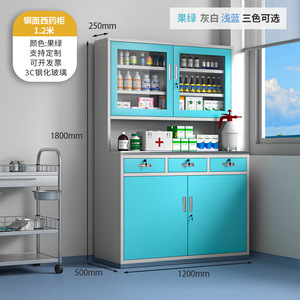 1.2m スチール製洋薬キャビネット(フルーツグリーン)