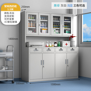 1.5m 鋼板西洋薬キャビネット 4 ドア (フルーツグリーン)