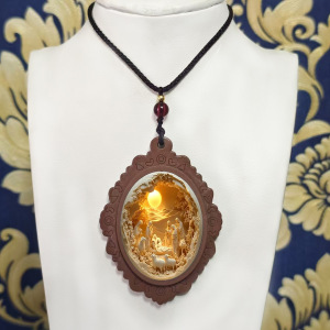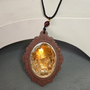 ファッション個性絶妙な神話シーンパターン楕円形ガラス木製ベースペンダントネックレス工場直販