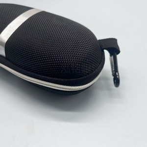 スポット卸売シルバーストリップジッパーメガネケース、ファッショナブルなフック、耐圧サングラスケース、ロゴ印刷可能なサングラスケース